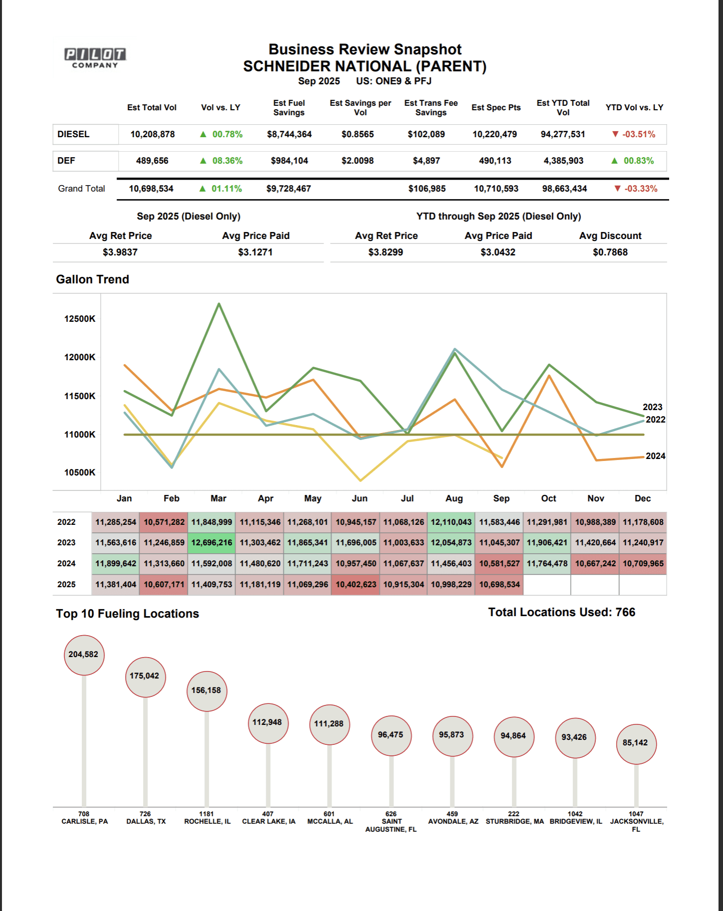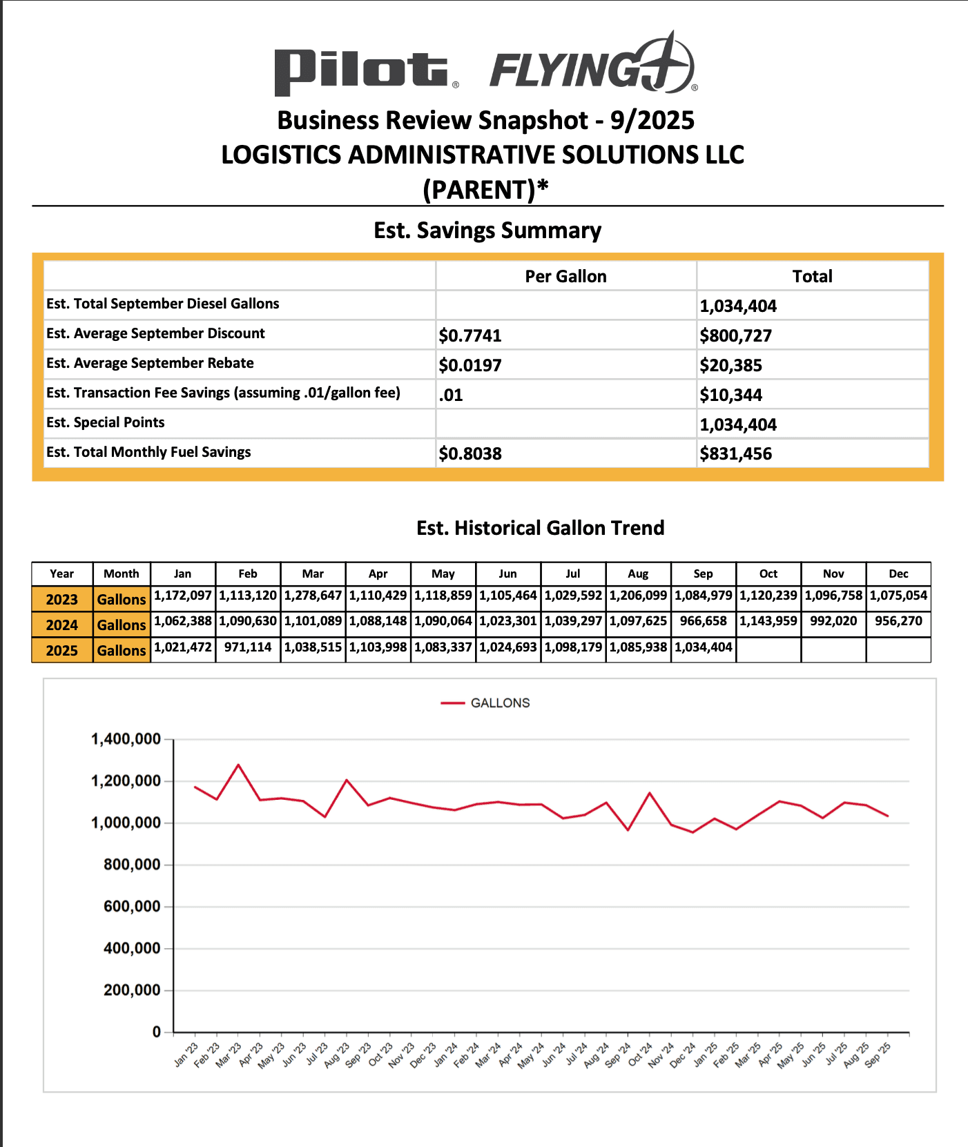 Gallon trend chart replaces dollar savings chart — volume data was reliable; financial estimates were not.